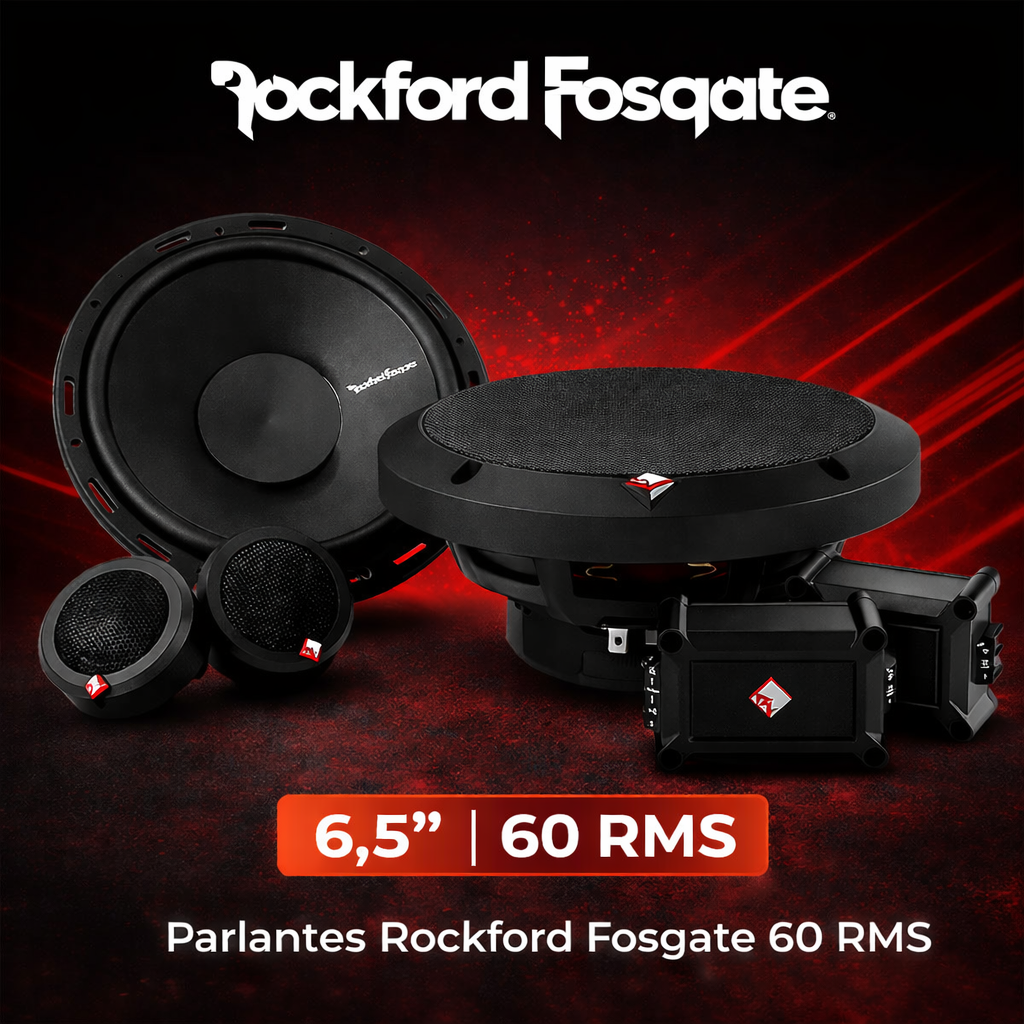 Componentes Rockford de 60 RMS, ideales para mejorar la calidad de sonido con mayor definición y potencia.
